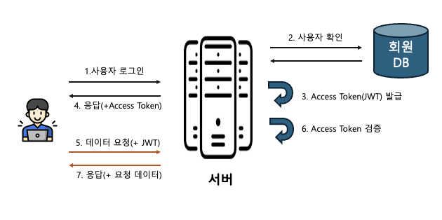 5. 사용자는 Access Token을 받아 저장한 후, 인증이 필요한 요청마다 토큰을 HTTP 요청 헤더에 실어 보낸다.